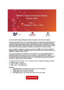 The ASEAN+3 Regional Economic Outlook 2025 was held on 11 June 2025, both online and onsite at ESSEC Asia-Pacific. The event was moderated by Mr Allen Ng and featured three distinguished panelists: Mr Manu Bhaskaran, Ms Selena Ling and Dr Taimur Baig. The speakers discussed ASEAN+3’s macroeconomic prospects and challenges given large trade shock and high uncertainties, amongst others. A key challenge for the region is not only to reignite growth, but also to revitalize it. They highlighted five key policy themes toward stronger sustainable growth paths for the region: (1) Upgrading manufacturing capabilities, (2) Prioritizing high skills and quality services, (3) Closing investment gaps, (4) Boosting innovation and leveraging on technology and (5) Strengthening state capacity.